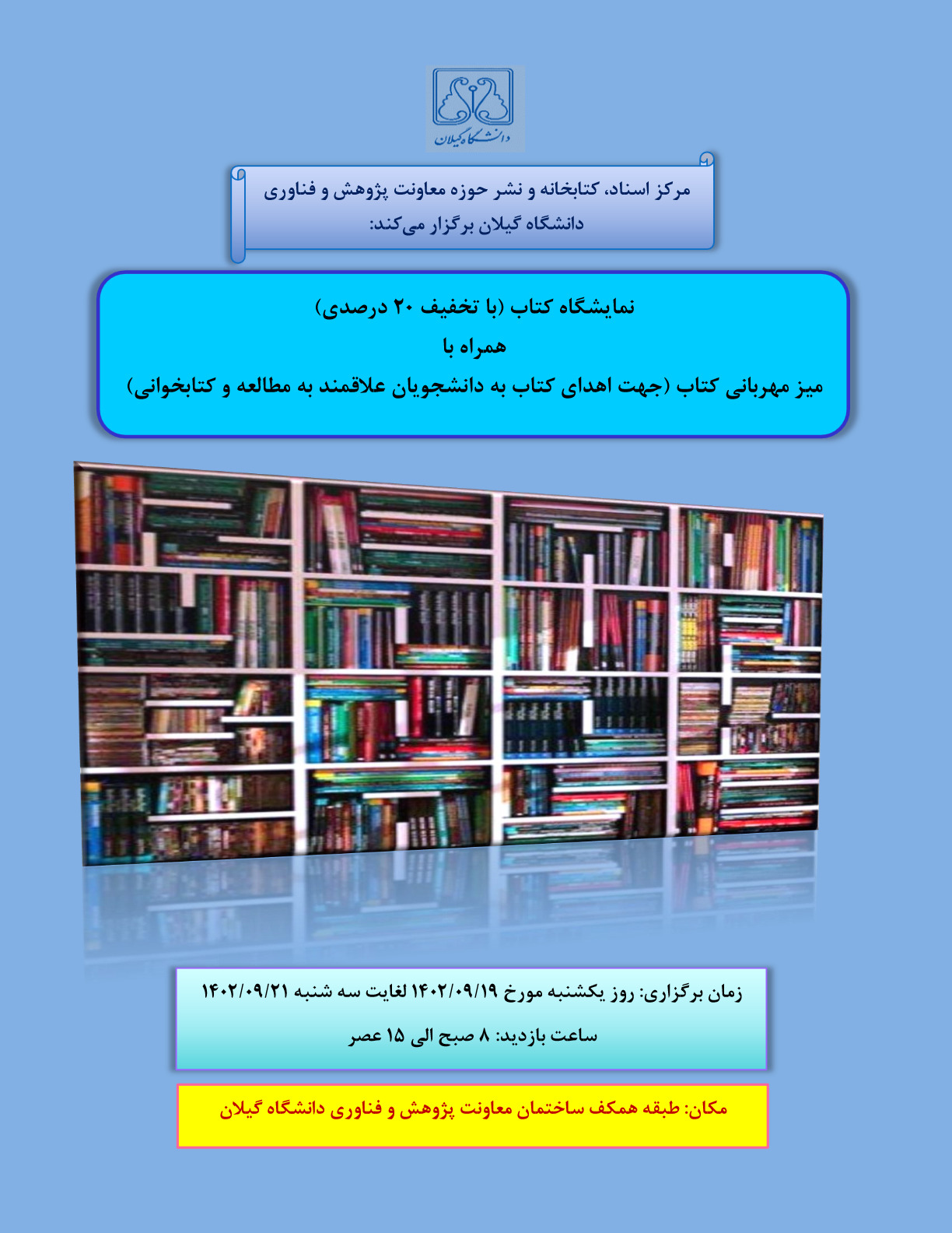 جناب آقای دکتر محمد دوستار، رئیس محترم دانشگاه گیلان، ظهر روز یکشنبه مورخ 1404/02/14 از کتابخانه مرکزی حوزه معاونت پژوهش و فناوری دانشگاه بازدید نمودند. گفتنی است در پی درخواست شورای صنفی دانشجویان به نیابت از جمع کثیری از دانشجویان دانشگاه که خواهان تقدیر از همکاران پرتلاش بخش امانت کتابخانه مرکزی دانشگاه بودند، رئیس محترم دانشگاه شخصاً در محل کتابخانه حضور یافتند و با اهدای لوح تقدیر و هدایا از کتابداران بخش امانت، تجلیل و قدردانی نمودند.